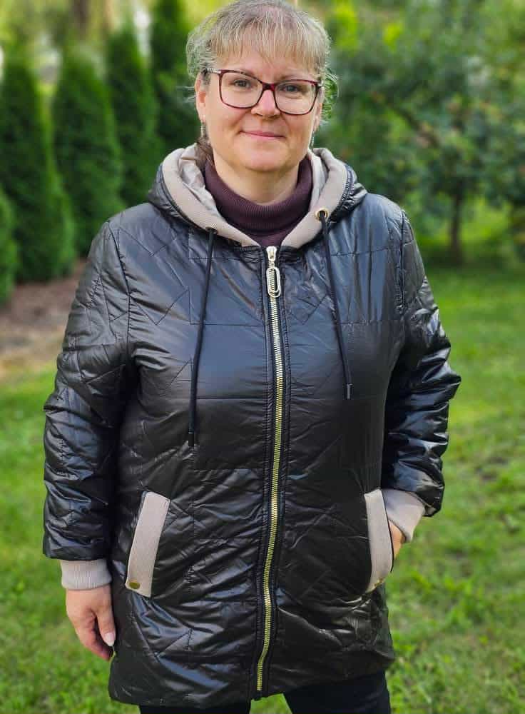 Rozměry: přes prsa, přes boky, délka rukávu (od ramene), celková délka vpředu/vzadu: